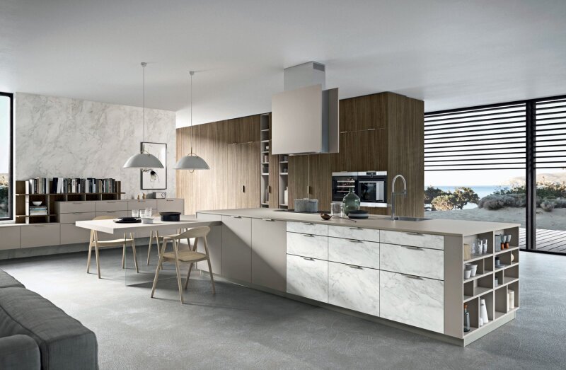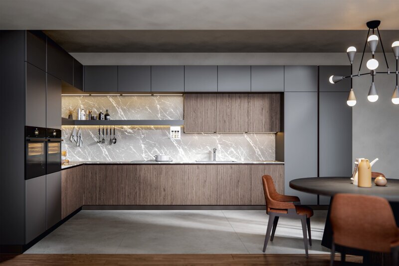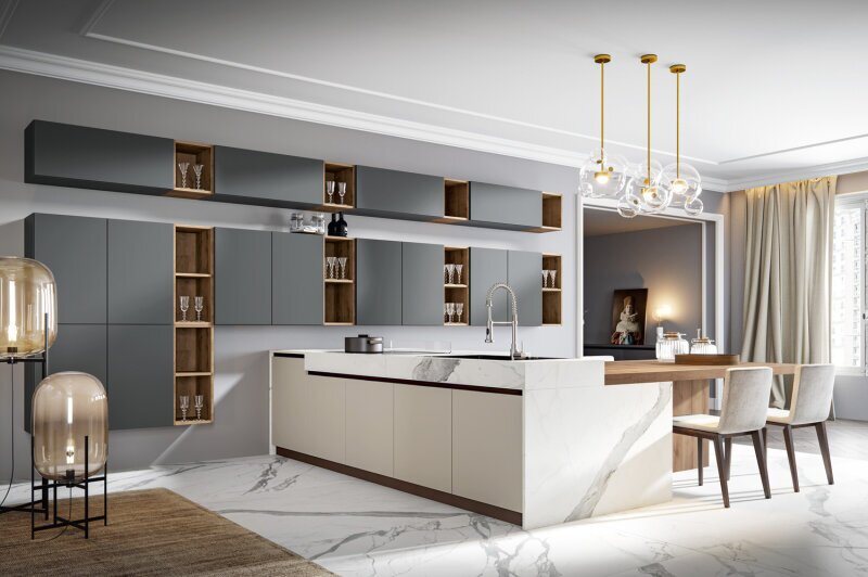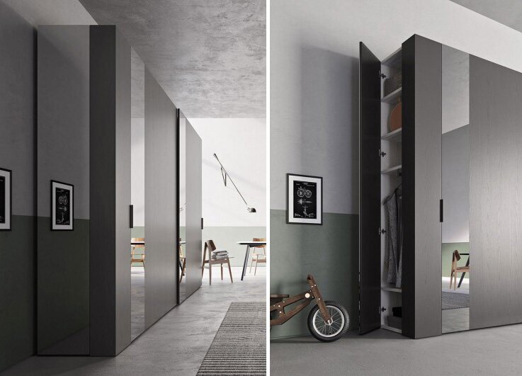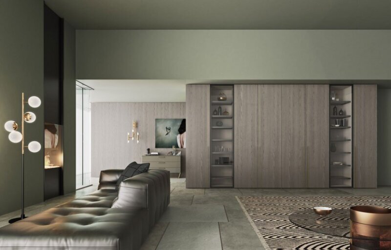 We design our kitchens keeping in mind the correct layout and separation of the available space, as well as the correct use and practicality required by everyday life. Our wardrobes are designed with attention to detail and with a modern elegance, both outside and inside. The interior doors now have details inspired by the world of furniture and include new technological innovations.